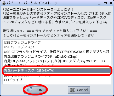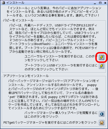 今回はパソコンにPuppyLinuxをインストールしたいので『パピーをインストール』という方が該当します。