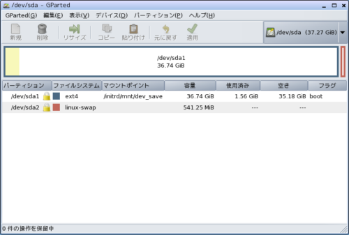 このデュアルブートにしない設定では、パーティションはこうなります。